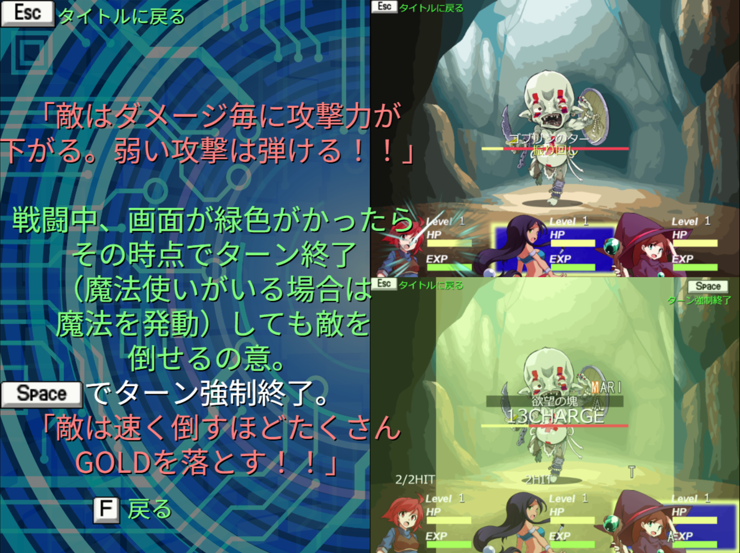 ならない),速く倒すほどGOLD,戦闘中のプレイヤーの回復はチートという